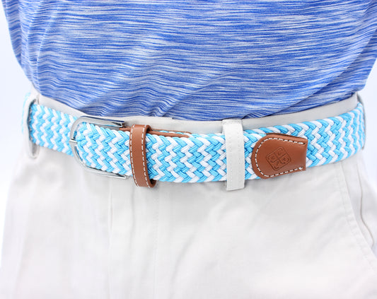 Braided Elastic Golf Belt - Signature Series (Baby Blue & Frost White)