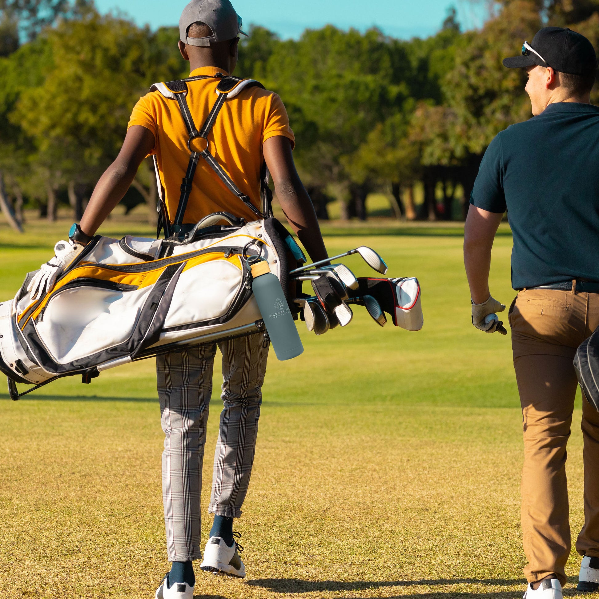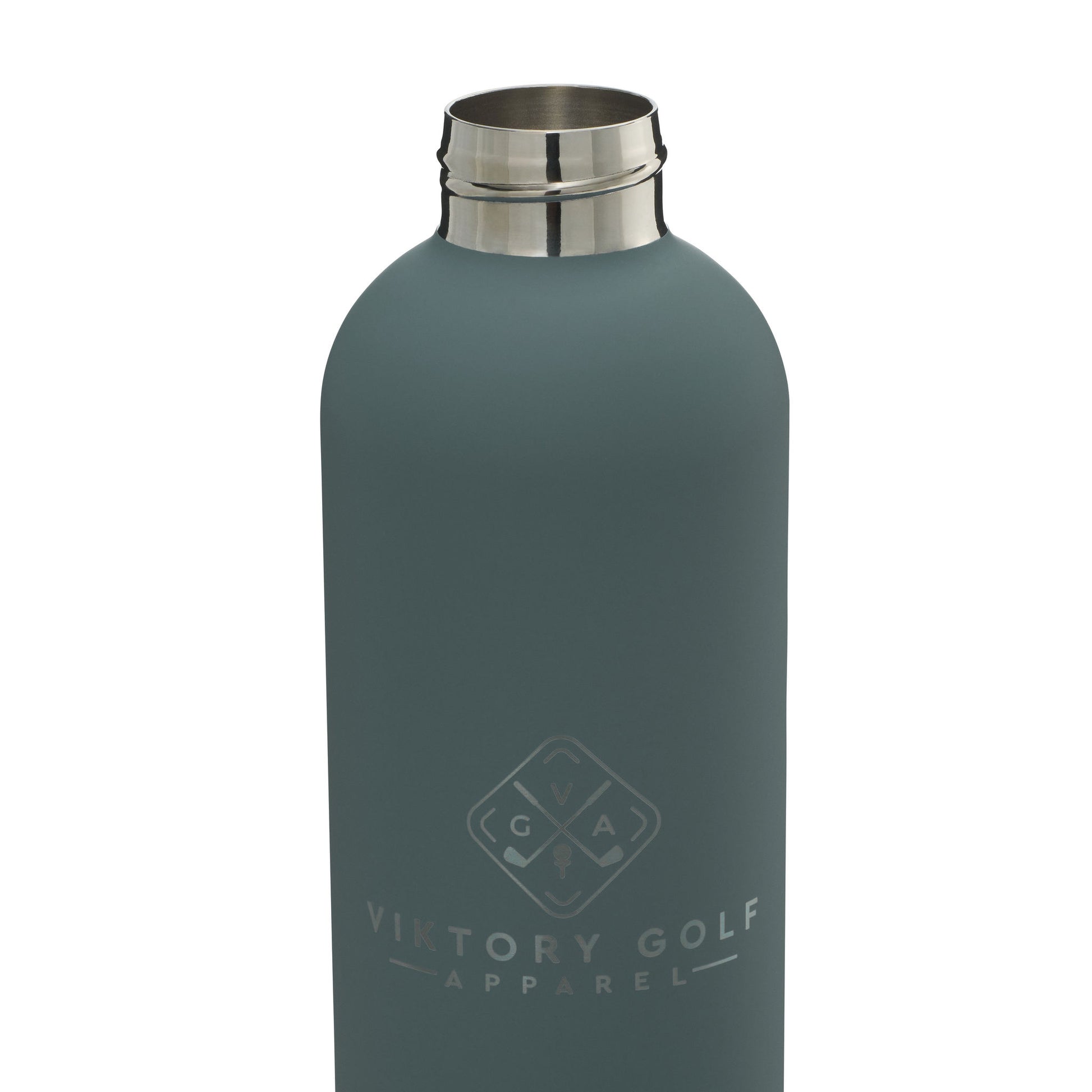This premium insulated water bottle from ViKtory Golf Apparel keeps drinks hot or cold for hours. The double-walled, vacuum-sealed construction with stainless steel interior and exterior effectively prevents heat transfer, keeping contents chilled while on the course or piping hot for those winter months.